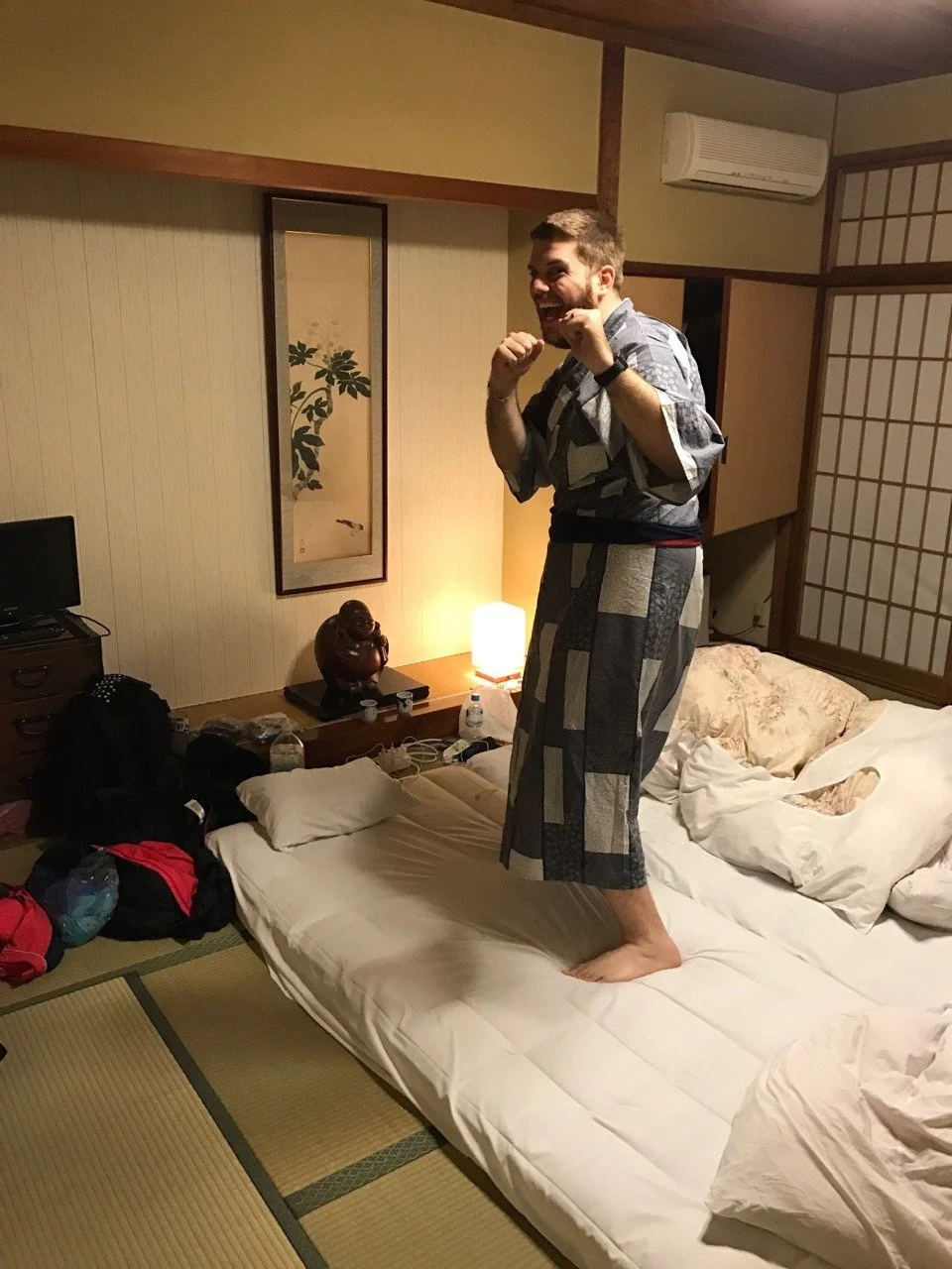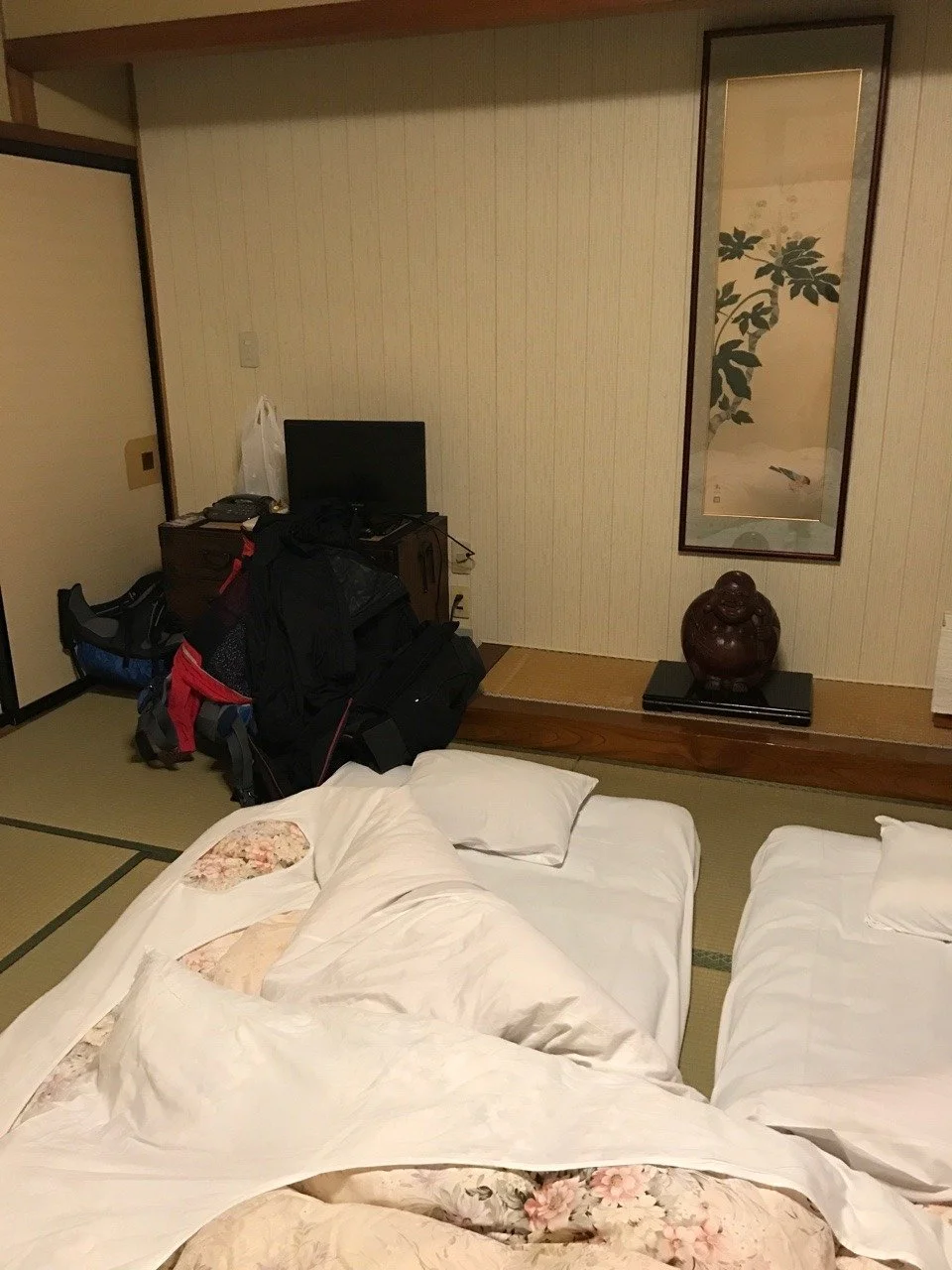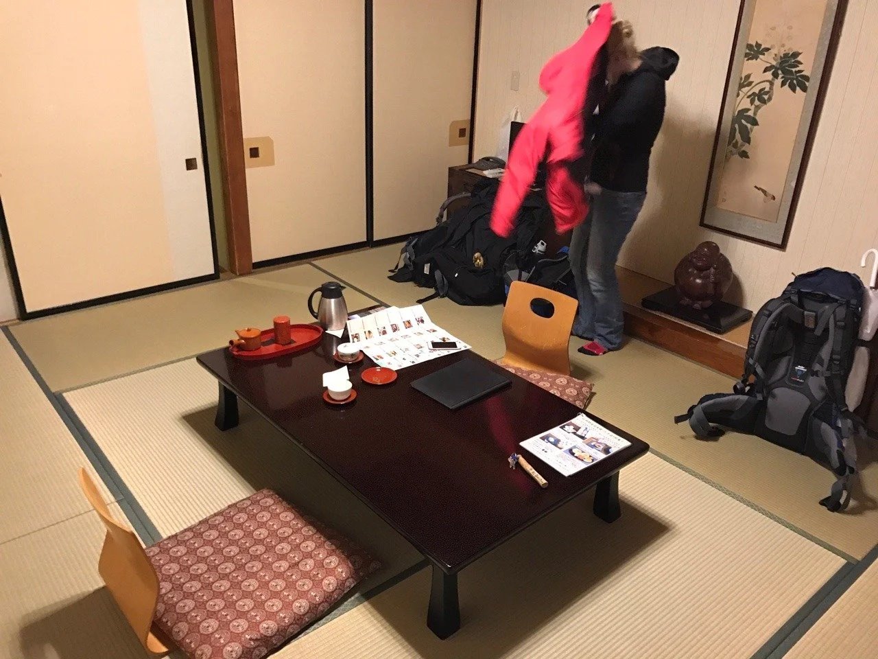 Heute Abend übernachten wir in einem Ryokan, also einer traditionellen japanischen Unterkunft.