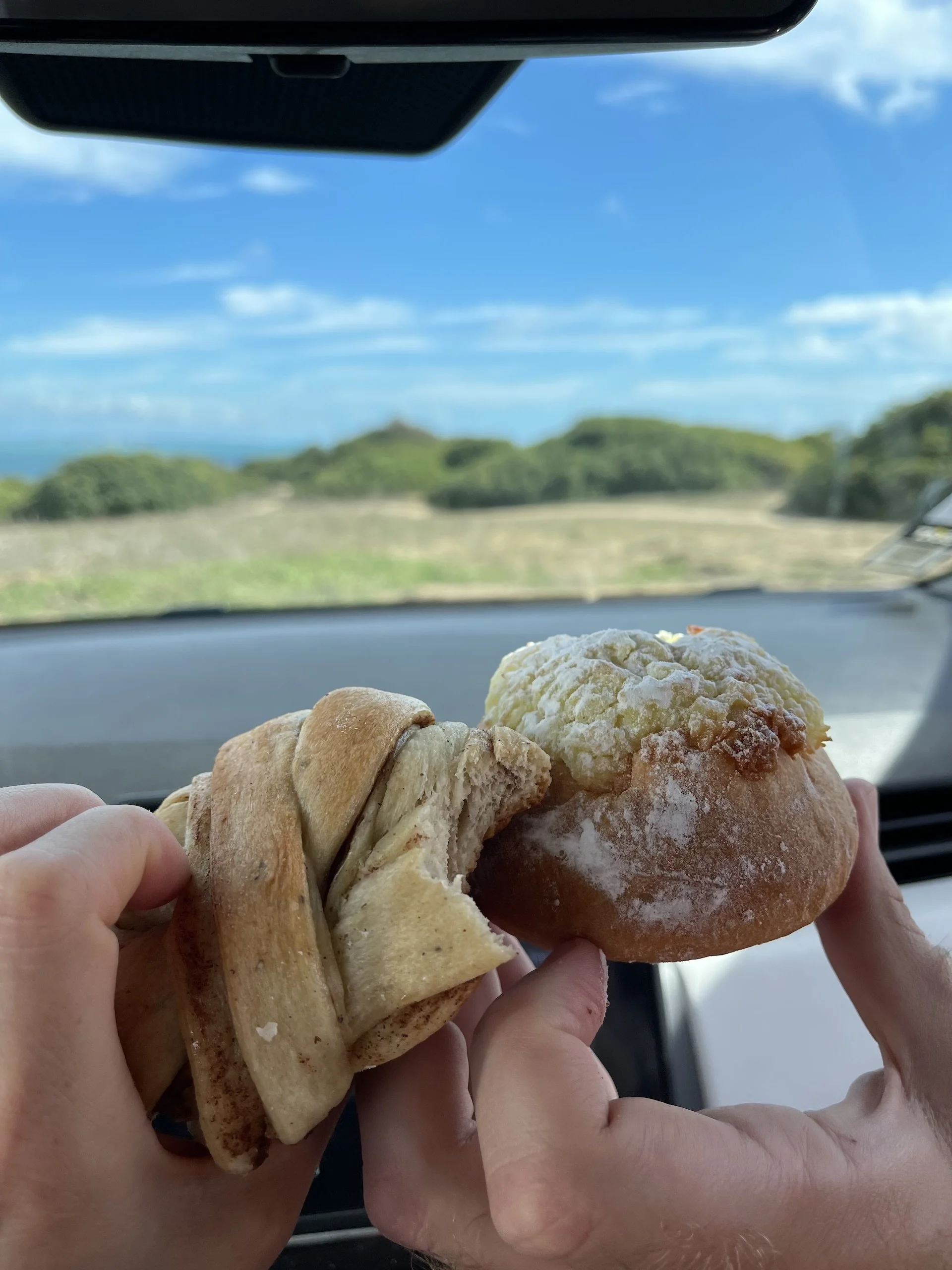 Als wir wieder am Auto waren haben wir noch einen Snack verputzt mit der großartigen Aussicht auf den Atlantik.