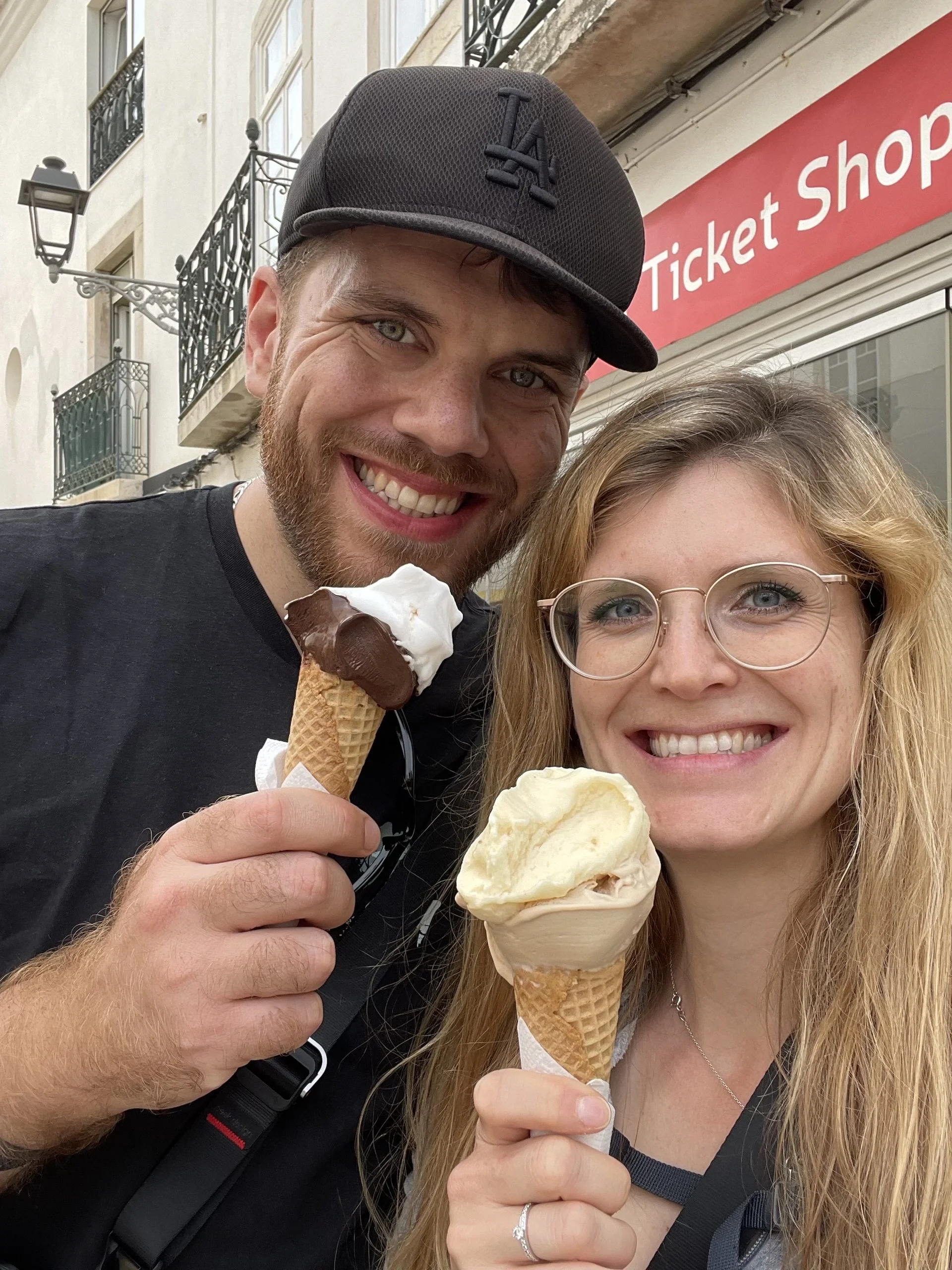 Wir haben beim Rumlaufen einen Eisladen gefunden, der unter anderem auch vegane Eissorten hat. Benni hat Schokolade und Zitrone probiert und ich hatte Haselnuss und Ananas. Alle Sorten war sehr lecker und die vegane Waffel ebenfalls 😊.
